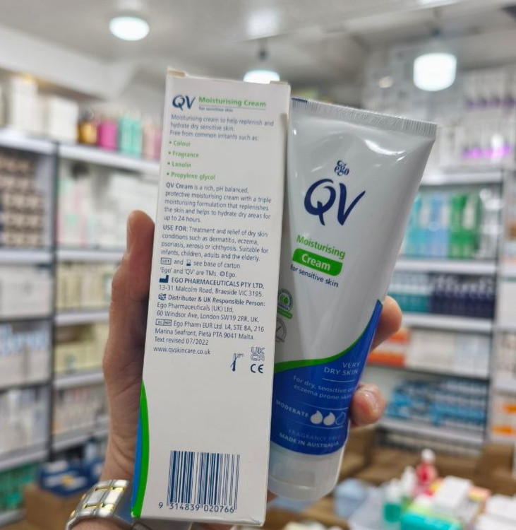 کرم مرطوب کننده کیو وی QV اصل برای پوست خشک و حساس Qv moisturising Cream For sensitive skin 100g