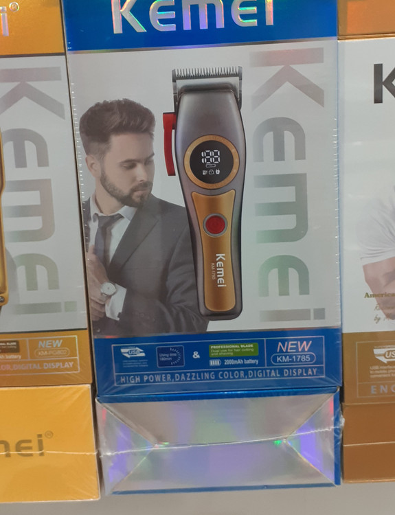 برند : کیمی KEMEIمدل : KM-1785عنوان : حجم زن ، فید زن و سایه زنقابلیت اصلاح بصورت صفر : 0.2قابلیت اصلاح ریش : داردقابلیت اصلاح موی سر : دادمنبع انرژی: باتری 2000mah میلی آمپرمدت زمان شارژ کامل:2.5 ساعت مدن زمان قابل استفاده: 180 دقیقه بیشترین دور موتور توربو نمایشگر : داردنوع طراحی : ارگونومیک
