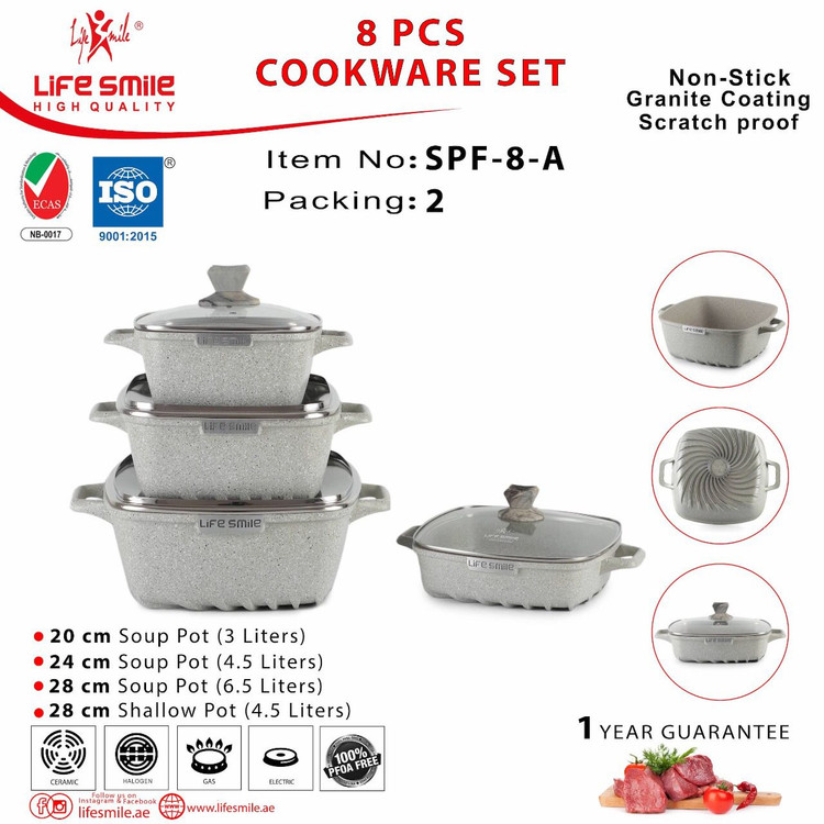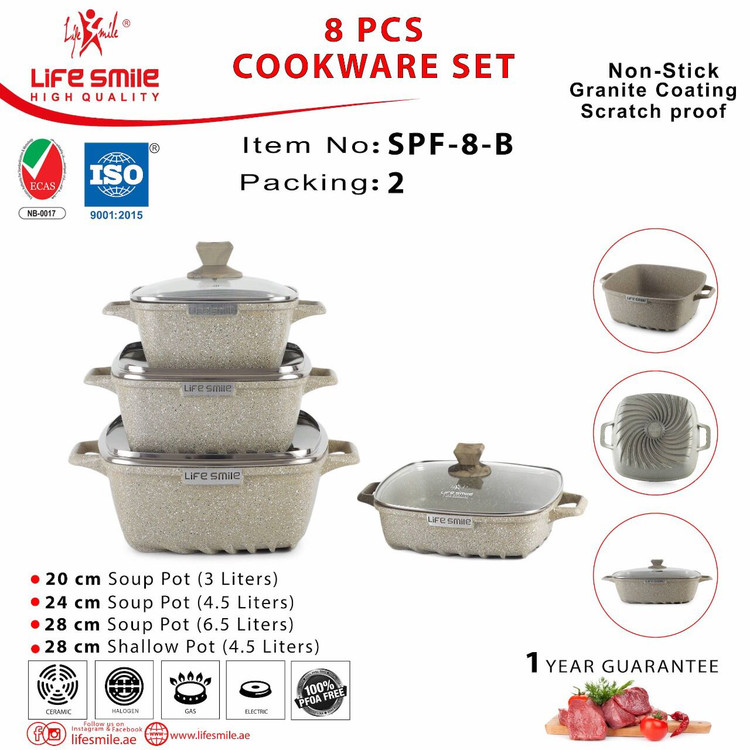 سرویس قابلمه 8 پارچه مربعی بایو گرانیت لایف اسمایل مدل SPF 8