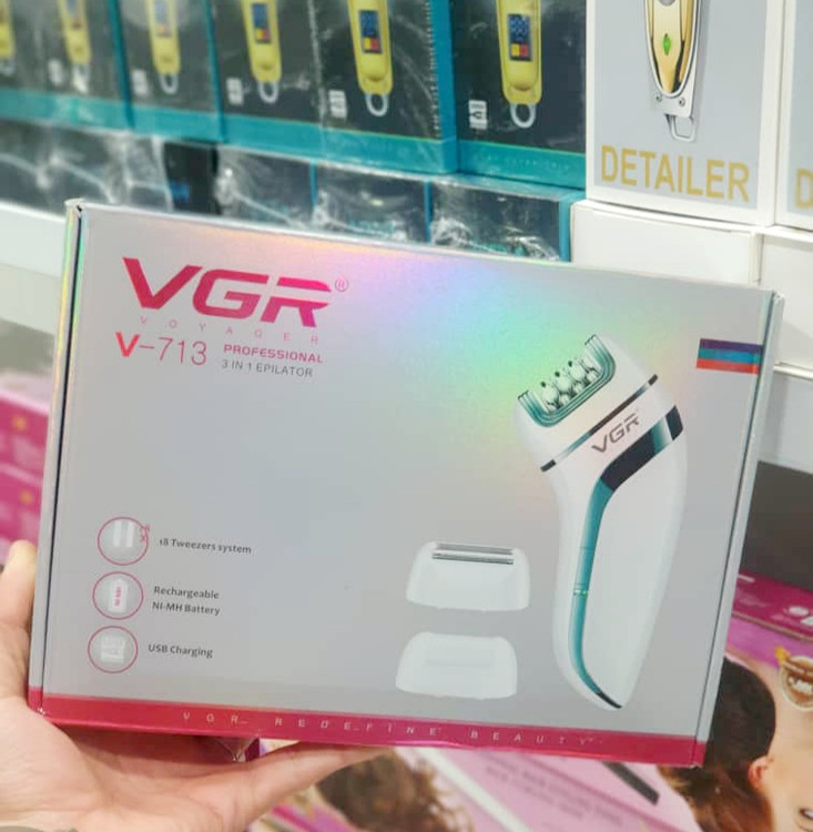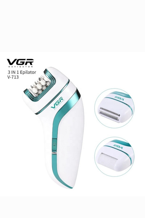 اپیلاتور 3 کاره وی جی آر مدل V-713 که توسط شرکت وی جی ار تولید شده است میتواند با یک بار قرار گرفتن آن روی پوست تعداد زیادی از موها را از ریشه جدا کند. برای این اپیلاتور وی جی آر تنها باتری قابل شارژ به عنوان منبع تغذیه در نظر گرفته شده است.