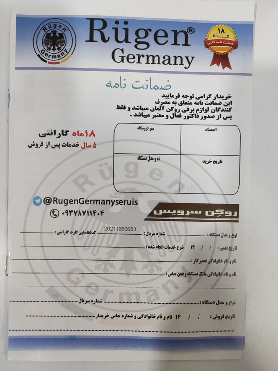 دارای ۱۸ ماه گارانتی شرکتی روگن سرویس