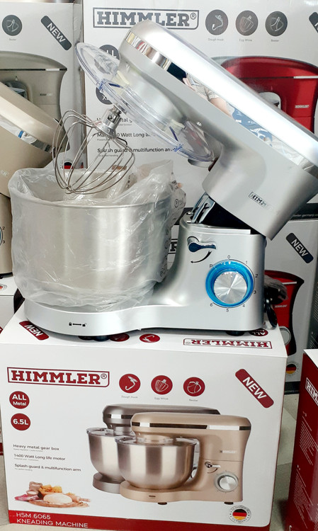 همزن کاسهدار حرفهای هیملر مدل HSM 6065 با 1400W یک برند آلمانی دارای استاندارد ce سفارش اروپا می باشد که تمام قطعات عم از شاسي دستگاه،گيربكس،چرخ دنده ها و سري ها و حتي نقطه اتصال سري به دستگاه فلزي مي باشد كه با کیفیت فوق العاده ، همه کار و زحمت پخت و پز و تهیه کیک و شیرینی، تهیه خامه و سسها و دیگر ترکیبات غذایی، به هم زدن مواد به صورت حرفهای مربوط میشود. اینکه یک وسیله خوب، همه این کارها را بر عهده بگیرد، بسیار لذت بخش است و کار شما فقط تعیین کردن حجم و اندازهی مواد خواهد بود. هم زدن و میکس مواد را به یک دستگاه همزن خوب بسپارید هیملر این اطمینان خاطر را به شما خواهد داد که نسبت به کیفیت کار مطمئن باشید که کارگری چابک کارها را انجام میدهد و میتوانید مثل یک کارفرما برخورد کنید. دستگاه همزن هیملر یک نتیجە عالی از تهیە مواد اولیە دستوالعملهای پخت را فراهم میسازد. همزن کاسهدار هیملر یک کاسه با ظرفیت 6.5 لیتر دارد و در هر مرحله 1.4kg خمیر و 3.5 لیتر خامه یا مایه سسها را فراهم میسازد، جنس کاسه استیل ضد زنگ بوده و بر روی آن درپوشی قرار میگیرد که از پاشیدن مواد در حین هم زدن بر روی سطوح ممانعت میکند. این درپوش شفاف یک منفذ برای افزودن مواد دارد. درضمن دستگاه دارای سه پره تمام فلزی (نشکن) مخصوص برای فرم دادن خامه / ورز خمير نان و پیتزا و پره مخصوص تخم مرغ میباشد. دارای 2 سال گارانتی رسمی شرکتی و 5 سال خدمات پس از فروش