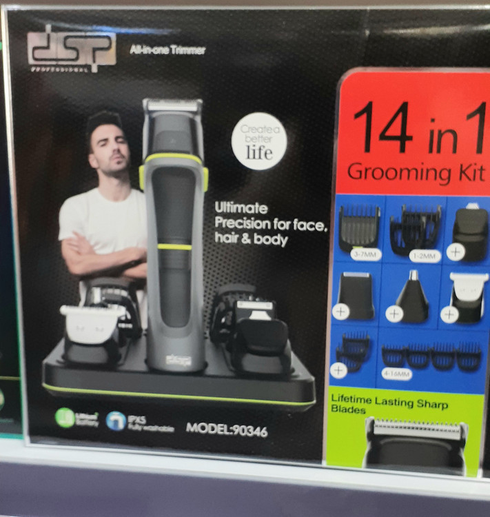 خریدآنلاین ست ماشین اصلاح 14کاره دی اس پی مدل 90346یکی از جدیدترین مدلهای موجود در بازار ماشین اصلاح چند کاره دی اس پی مدل 90346 میباشد. ماشین اصلاح سر و صورت DSP مدل 90346 از جدیدترین محصولات شرکت دی اس پی بوده، که 14 کاره میباشد، شامل خط زن، موزن گوش و بینی، شیور، اصلاح خط ریش و یک سری برای اصلاح سر میباشد. جنس تیغههای این محصول از استیل ضد زنگ بوده، که در برابر هوا و رطوبت از ماندگاری بالایی برخوردار است. خط زن دی اس پی به صورت بی سیم عمل کرده که در مدت زمان 120 دقیقه شارژ شده و پس از آن میتوان به مدت 60 دقیقه از آن استفاده کرد. از ویژگیهای خوب ریش تراش دی اس پی مدل 90346 نیز تکنولوژی IPX5 بوده، که ضد آب میباشد. به همراه ماشین اصلاح DSP نیز پنج عدد اصلاح کننده برای سر، صورت و بدن و 9 عدد شانه برای این سری ارائه شده است. که در مجموع به این مدل 14 کاره گفته میشود. از مزیتهای خوب خط زن «دی اس پی» مدل 90346 قدرت موتور آن و نیز ضد آب بودن آن است. از دیگر ویژگیهای ریش تراش باتری لیتیومی آن میباشد، که خیلی دیرتر خالی میشود.