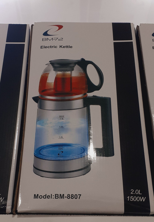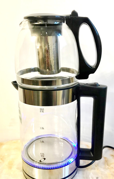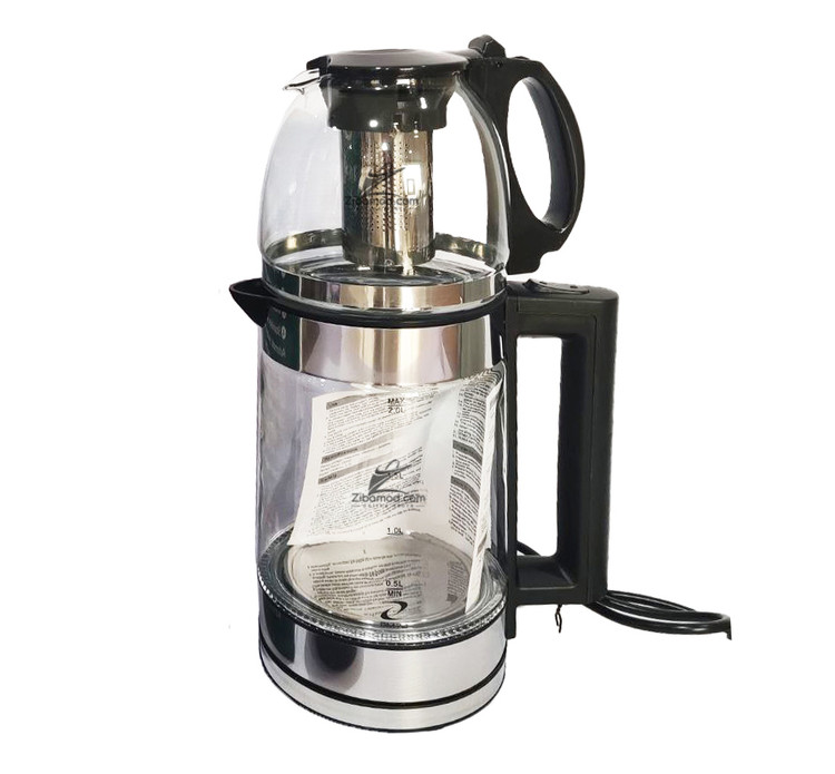 کتری با حجم ۲ لیتر قوری با حجم ۱ لیتر بدنه کتری از شیشه مقاوم به حرارت مجهز به سیستم خاموشی اتومات بعد بجوش آمدن آب دارای چراغ آبی هنگام کار دستگاه توان مصرفی 1500 وات چرخش ۳۶۰ درجه پایه