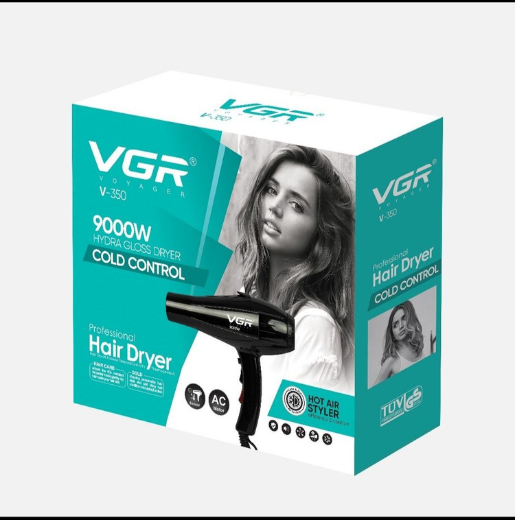 سشوار وی جی آر V-350 VGR برند: وی جی آر مدل تجاری : 350 فناوری تولید یون : دارد توان : 9000 وات واقعی استفاده : سالنی خانگی موتور : سنگین AC کنترل باد : 2 حالت کنترل حرارت : 3 حالت سری متمرکز کننده : دارد طول کابل : 1.5 متر حلقه آویز : بله جنس بدنه : پلاستیک مقاوم سشوار وی جی آر V-350 VGR