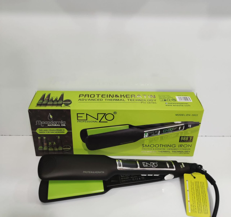 اتو موی انزو مدل EN-3822 دارای صفحات از جنس سرامیک تیتانیوم هست که مخصوص کار کراتین و پروتئین در سالن یا برای حالت دادن موهای کراتین شده در منزل می باشد. حرارت دستگاه از 300 تا 985 درجه فارنهایت برای مدلهای مختلف و انواع جنس مو قابل تنظیم هست. همچنین دارای فن آوری تنظیم پیشرفته درجه حرارت برای موهای شکننده، آسیب دیده و موهای سالم می باشد. اندازه صفحه اتو موی انزو مدل EN-3822 در ابعاد 45 در 100 میلی متر هست که این سایز مناسب صاف کردن و خوش حالت کردن موهای بلند می باشد. مخصوصا با تکنولوژی آیونیک، تولید دائمی یون، که دارد الکتریسیته ساکن مو را خنثی می کند و حالت وزی حتی ضخیم ترین موها را هم از بین می برد. اتو موی انزو پروفشنال مدل EN-3822 دارای المنتی با قدرت 65 وات و از نوع TCL هست که صفحات را در کمتر از 30 ثانیه به حداکثر دما یعنی 985 درجه فارنهایت می رساند. این اتو مو در حالت بی کاری بعد از 60 دقیقه به صورت اتوماتیک خاموش می شود. سیم آن از نوع کابلی بوده که 360 درجه می چرخد و نمی گذارد سیم له شود. همچنین می توان صفحات آن را قفل کرد که در تماس با وسایل دیگر دچار آسیب دیدگی یا خط و خراش نشود. در یک جمعبندی اتو موی انزو پروفشنال مدل EN-3822 با طراحی ارگونومیک که بسیار خوش دست می باشد و اندازه صفحات پهن از جنس سرامیک تیتانیوم و المنتی با قدرت 65 وات در کمتر از 30 ثانیه آماده کار می شود، بسیار عالی و مناسب برای کار در هر اندازه مو می باشد که با هر میزان مهارت داشتن در آرایش مو می توان با آن کار کرد و از کار کردن با آن لذت برد.