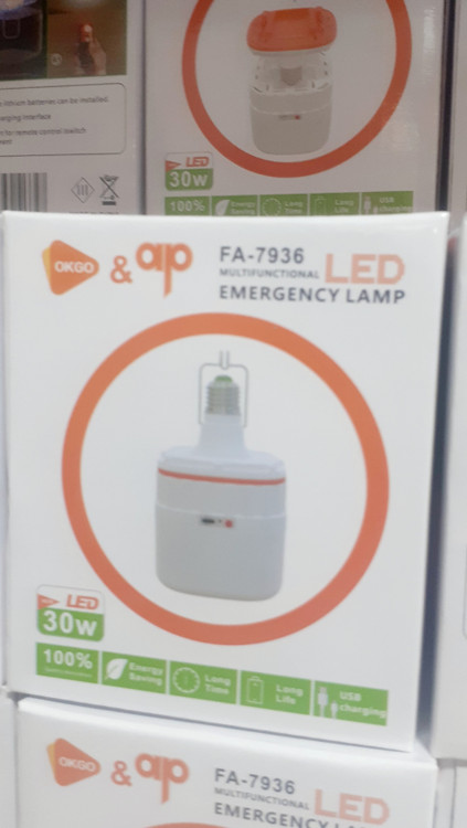 لامپ شارژی چند حالته OKGO مدل FA-7936 دارای جنس بدنه پلاستیک نشکن همچنین، مقاوم در برابر ضربه می باشد. لامپ شارژی خورشیدی دارای سه حالت نوردهی می باشد. قدرت چراغ چادری چند حالته ، 30 وات و دارای طول عمر بیش از 50000 ساعت است. لامپ شارژی چند حالته هم با دوعدد باتری با سایز 18650 وهم با 3 عدد باتری قلمی قابل روشن شدن می باشد. چراغ چادرچند حالته OKGO مدل FA-7936 دارای سرپیچ سقفی می باشد که می توانید براحتی وصل کنید و جدا ازین دارای حلقه نگهدارنده نیز می باشد که این حلقه مناسب برای سقف چادر در کمپ است. منبع تغذیه لامپ شارژی چند حالته توسط کابل تایپ سی است.